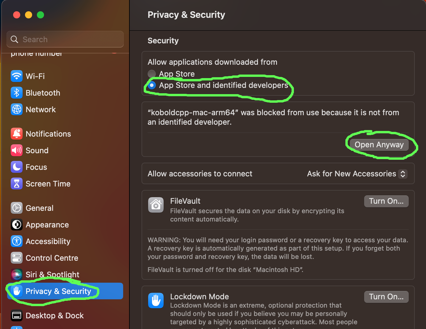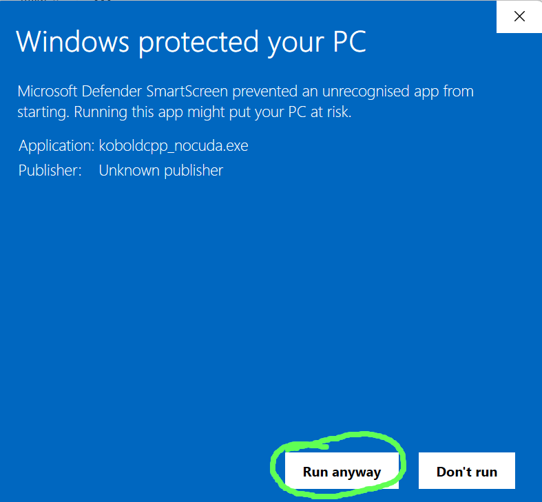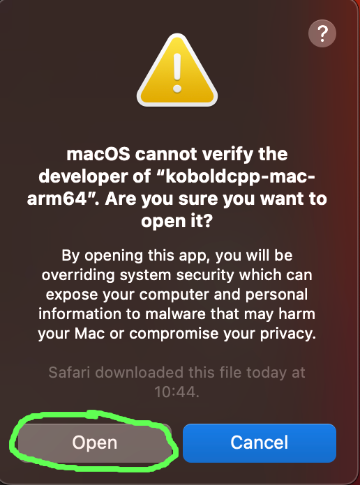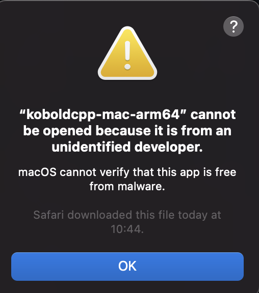 If KoboldCPP needs permissions to start on your operating system, see below for a solution.