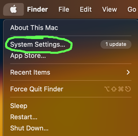 When you are sure you want to run the file, open "System Settings" from the Apple icon menu in the top left of your desktop.