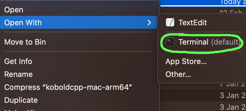 Mac and Linux users, if your computer acts as though KoboldCPP is a document rather than an application, for instance opening in a text editor rather than launching, or showing in the file viewer as a document.