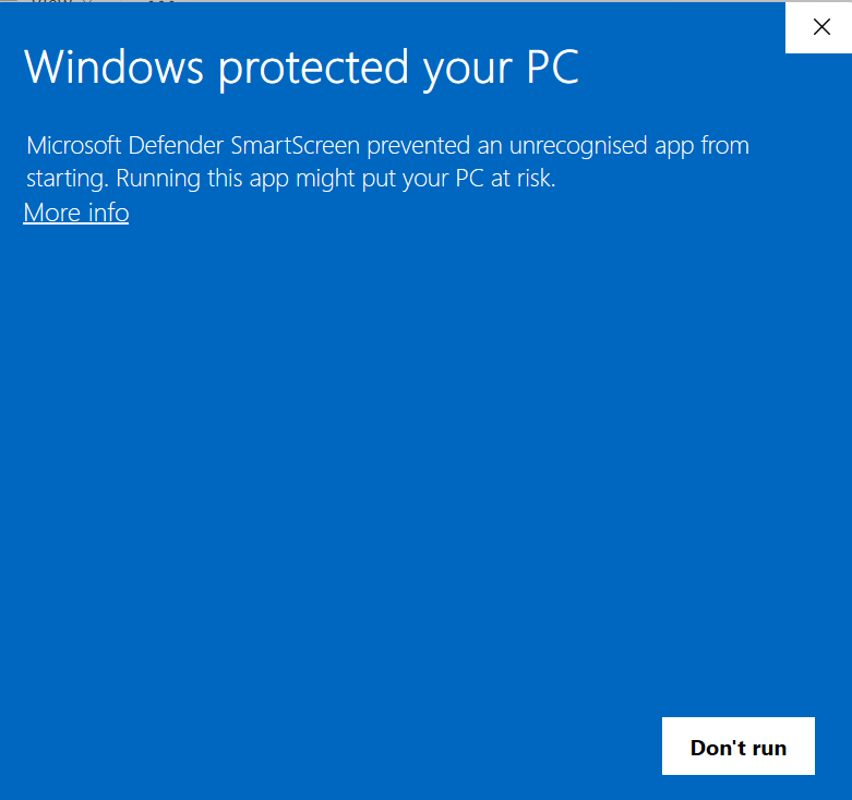 Windows users, if your Operating System doesn't trust the file. dispaying a message such as the following.