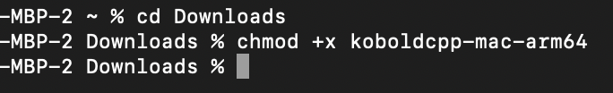 Open a terminal in the directory where you downloaded KoboldCPP. For most users if the file is in your normal Downloads folder, you can do this by opening a terminal and typing cd Downloads followed by enter.